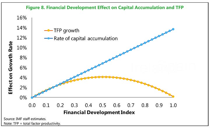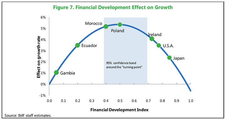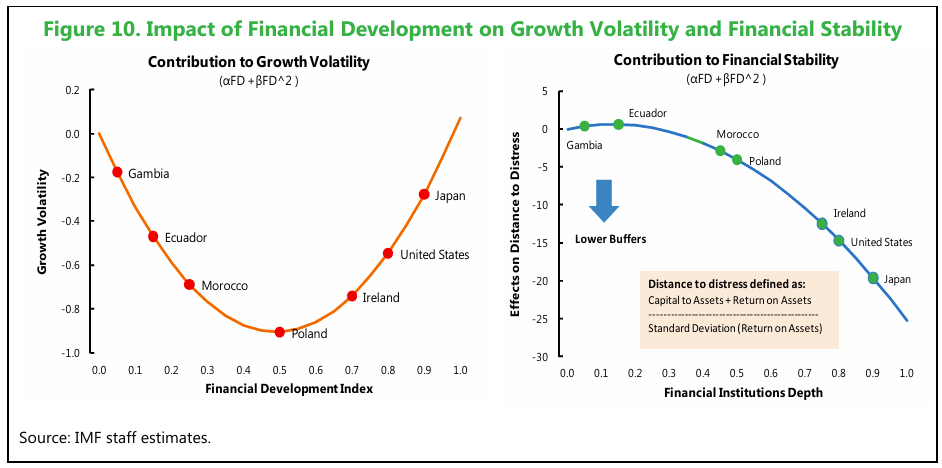 Totuși, un lucru care nu trebuie trecut cu vederea este relația dintre volatilitatea creșterii economice și dezvoltarea financiară. Sahay et al. (2015) afirmând că există o relație semnificativă și pozitivă. Prin urmare, creditarea excesivă, însoțită de asumarea de riscuri excesive în lipsa unor reglementări adecvate, poate genera efecte adverse asupra stabilității economice.