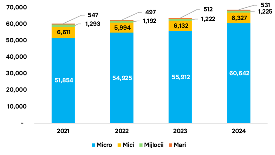 Potrivit datelor BNS, în anul 2024 numărul întreprinderilor din Republica Moldova a ajuns la 68,725, marcând o creștere cu 8,420 de entități față de anul 2021. În timp ce numărul întreprinderilor mari, mijlocii și mici a rămas relativ constant în această perioadă, creșterea s-a datorat în principal întreprinderilor micro.