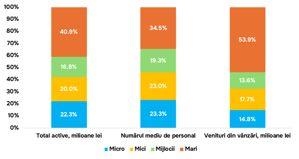 Cu toate că întreprinderile mari reprezintă aproximativ 0.8% din total, acestea sunt responsabile de 34.5% din forța de muncă, 53.9% din totalul vânzărilor și dețin 40.9% din totalul activelor întreprinderilor.